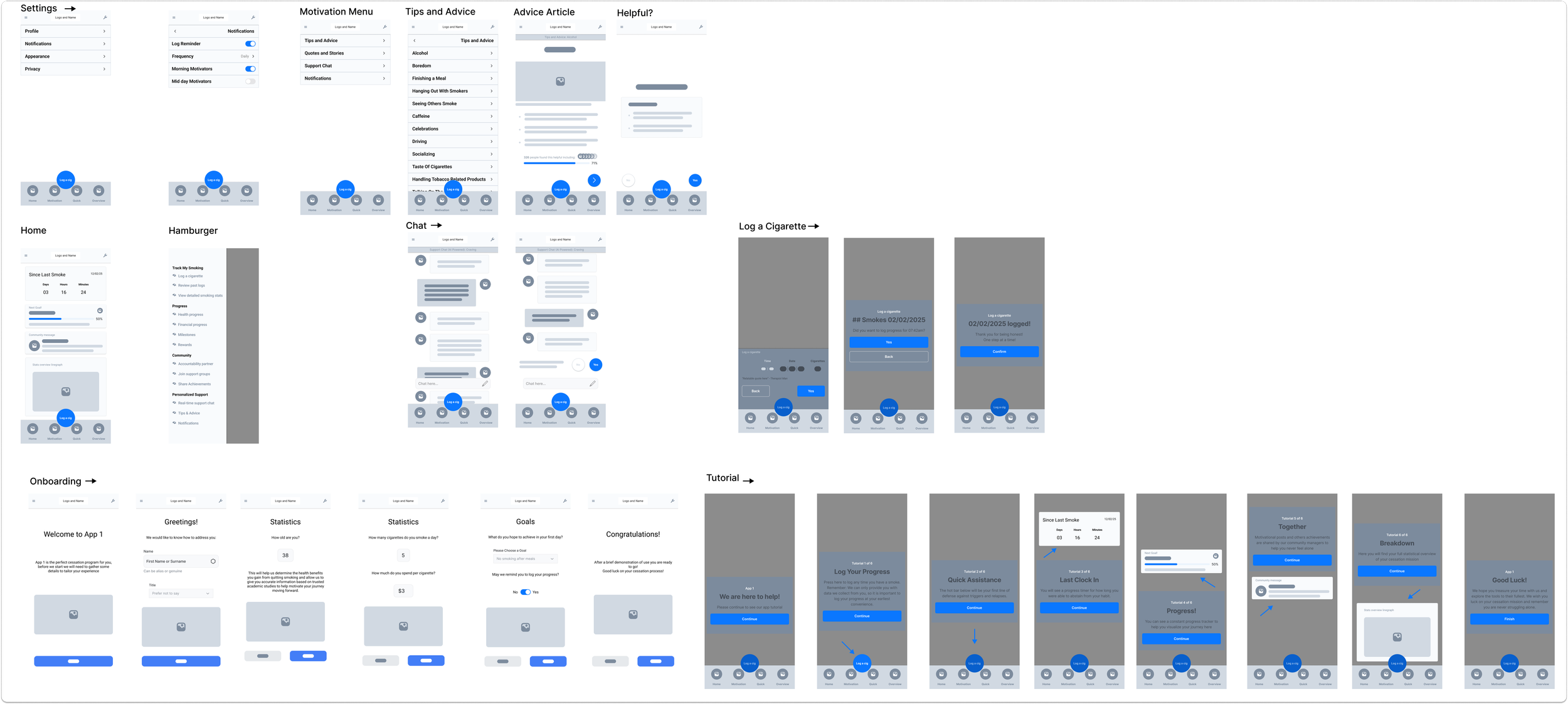 We have so many moving parts in the second image because I want to immerse the testers in the prototype and feel like they are trying an app that will help them beat their habit right out of the gate.